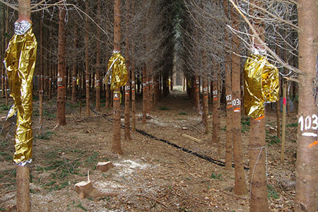 Solange keine zusätzlichen Schäden auftreten führt Zurückhaltung oder Verzicht auf Durchforstung zu dichten Beständen mit relativ geschlossenen Kronen. Damit verbunden ist – abhängig von der Baumart – ein vergleichsweise kühles und feuchtes Bestandesinnenklima. Durchforstung lockert diesen Kronenschluss. Folgen sind (geringfügig) erhöhte Temperaturen und (etwas) reduzierte Luftfeuchten im Bestand. Vordergründig könnte dies den Schluss nahelegen, dass dies ungünstige Auswirkungen auf die Bodenfeuchte haben müsste, was einer Verschlechterung der Wasserversorgung der Bäume gleichkäme. Träfe dies zu, dann wären Durchforstungen im Klimawandel für die Bäume tatsächlich eher ungünstig zu beurteilen. Wäre! Denn der Knackpunkt ist die Frage, ob diese vordergründige Einschätzung auch wirklich stimmt?