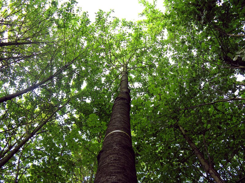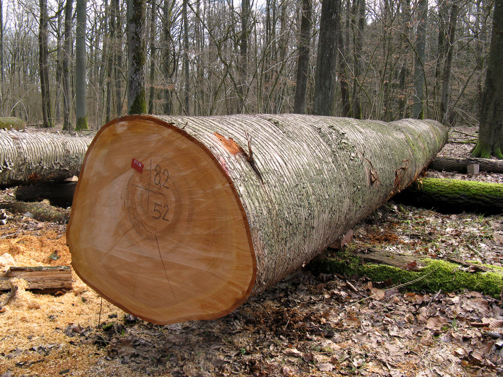 - einen astfreien, geraden, sechs bis acht Meter langen (= ¼ der Endhöhe) Schaft mit BHD mind. 60 Zentimeter,