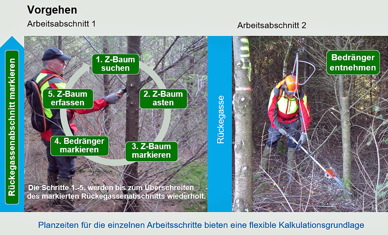 Voraussetzung für eine zielführende Anwendung des Verfahrens ist für den Arbeitsabschnitt 1 die waldbauliche Kompetenz der Ausführenden. Sie ist für den Erfolg des gesamten Arbeitsvorhabens entscheidend.