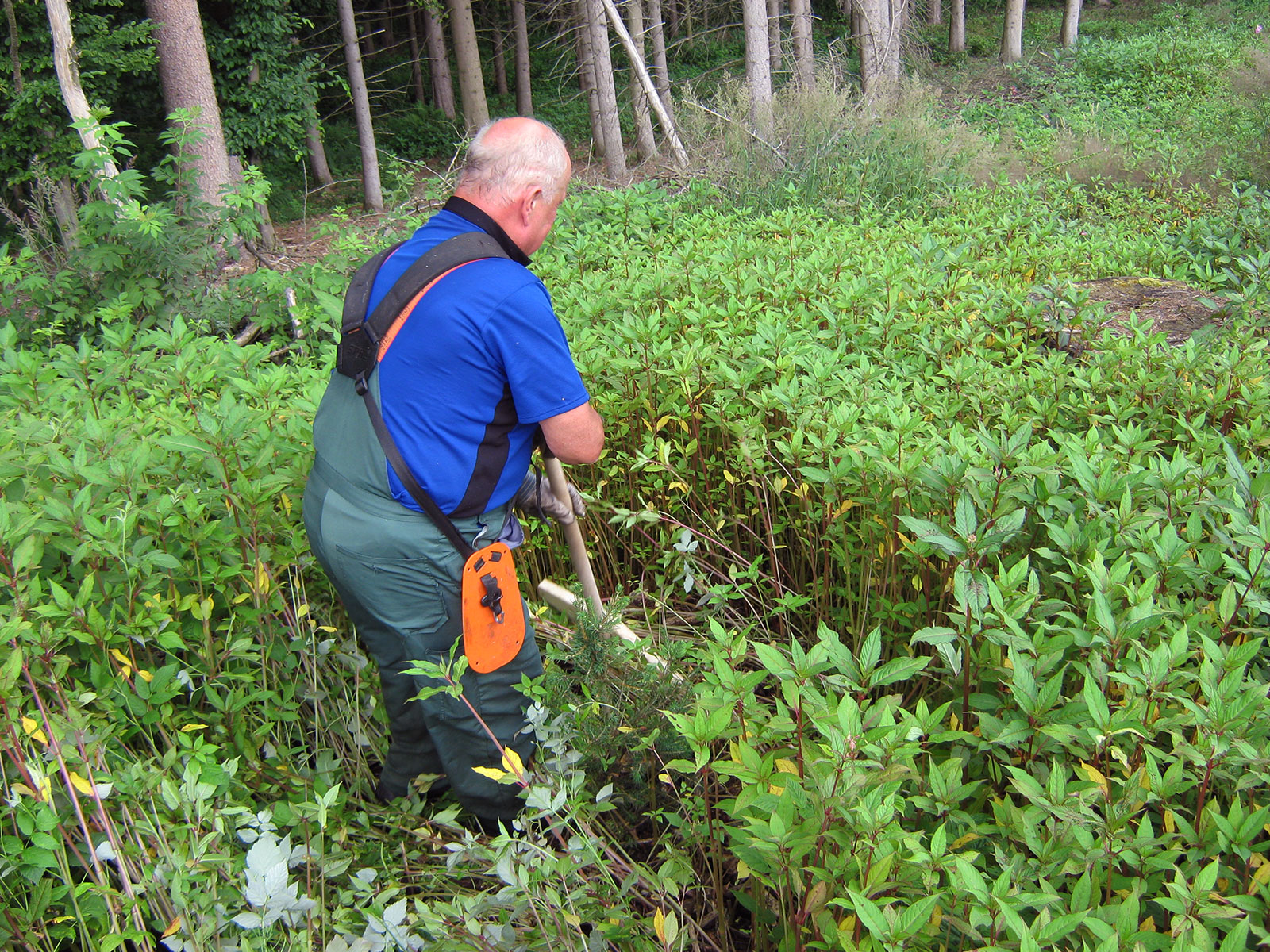 - Handgeräte (Schweizer Gertel, Heppe, etc.): häufiges Bücken, Schlagbewegungen bei verholzten Pflanzen belasten die Gelenke, Verletzungsgefahr durch scharfe Klingen, Rückschnitt regt Wachstum von Brombeere und Holunder eher an