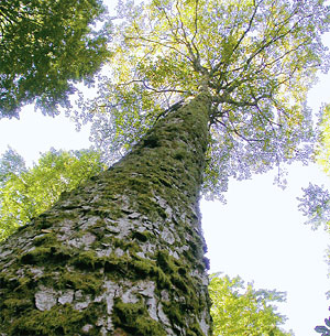Abb. 3. Ein Bergahorn guter Qualität: Der Baum ist Produktionsmittel und Produkt in einem. Der Entnahmezeitpunkt kann im Dauerwald dank Einzelstammnutzung für jeden Wertträger optimal bestimmt werden. Foto: Tobias Liechti
