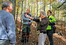 Die 23 Kursbesucher teilen sich in Gruppen auf und begingen – mit Farbbändern ausgerüstet – die Fläche mit fachmännischem Blick. Welche Bäume sind beim ersten Holzschlag zu ernten, wo muss mehr Licht auf den Boden fallen, welches sind geeignete "Nachrücker "? Es wird in den Gruppen laut und zum Teil heftig diskutiert. Nicht immer ist man sich über die Auswahl einig. "Während der Anzeichnungs-Übung entdeckten die Teilnehmenden immer wieder, dass es kein einzig wahres Rezept für die Auslese gibt. Fachwissen, Erfahrungen, aber auch Vorlieben für Baumarten spielen dabei eine Rolle", weiss der Kursleiter, Richard Stocker.