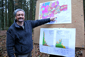 Überzeugungsarbeit leisten muss auch Patrik Mosimann aus Grenchen nicht. Er ist seit 19 Jahren ProSilvaSchweiz-Mitglied und immer wieder an den Anzeichnungs-Übungen mit von der Partie. Vor 21 Jahren hat er das Forstrevier der Bürgergemeinde Grenchen übernommen. Bei seinem Stellenantritt wurde festgehalten, dass er den Wald – wie es sein Vorgänger begonnen hatte – im Dauerwald-System bewirtschaften muss. Der Wald umfasst 970 ha. Die gesamte Fläche wird seit 1995 als Dauerwald bewirtschaftet. "Damals besass ich noch keine Erfahrung mit der Dauerwald-Bewirtschaftung und nur wenige Kenntnisse in Bodenkunde. Ich musste dies von Fachleuten lernen und meine Lehren im Wald der Bürgergemeinde Grenchen machen."