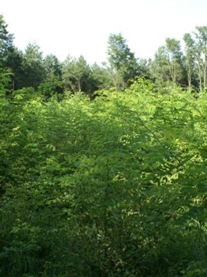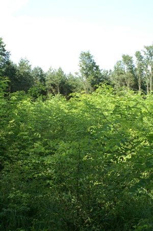 Abb. 4: Einjährige Robinien-Stock- und Wurzelaustriebe nach flächiger Nutzung des Vorbestandes. Die Triebanzahl beträgt bis zu 50.000 Stk./ha und der Zuwachs bereits rund 4 tatro /ha.