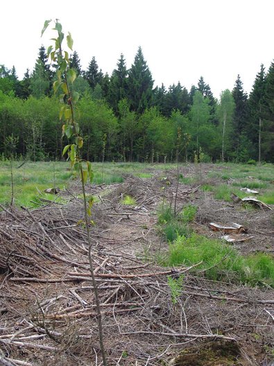 - Das Flächenpotenzial für Energievorwald ist begrenzt auf Freiflächen (> 0,4 ha), die bei naturnaher Waldwirtschaft relativ selten planmäßig entstehen. Sturm-, Schnee-, Eis- und Käferschäden führen aber auch dort regelmäßig zu Freiflächen. Planmäßig sind geeignete Freiflächen bei Umbau standortwidriger Bestockung, bei Eichenverjüngung, im Saumschlag mit Fichte oder Douglasie, bei Rekultivierungen und Erstaufforstungen zu erwarten.