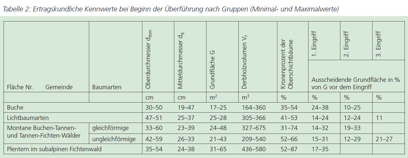 "Im Prinzip ist es möglich, mit allen Baumarten und Baumartenkombinationen zu plentern, wenn der Vorrat bzw. die Grundfläche entsprechend den Lichtbedürfnissen der Baumarten gewählt wird."