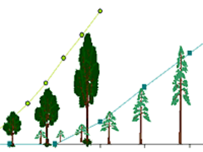 Abb. 4: Beispiel für die Wuchsdynamik bei Kombination schnellwachsender Pappel-Vorwälder und Fichte.