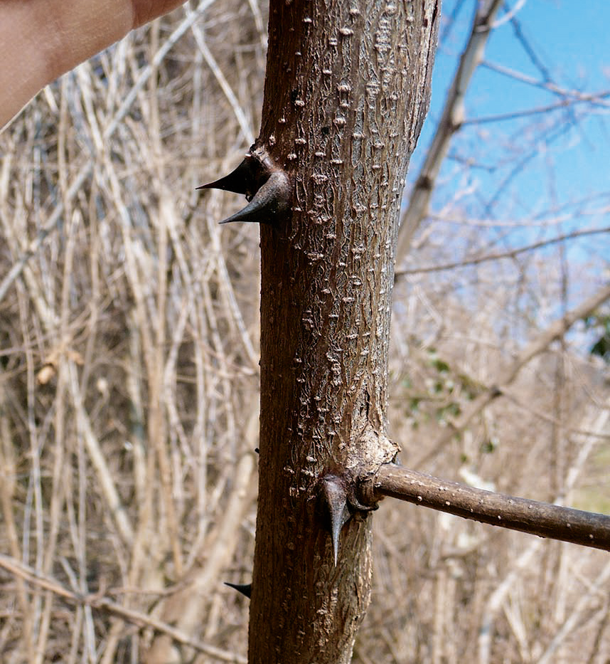 Abb. 2 - Eine dornenvolle Angelegenheit… Und aufgepasst bei Verletzungen der Haut: Die Robinie ist giftig. Foto: Walter Tschannen