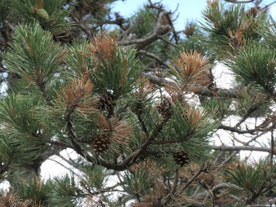 Unter den Kiefern ist die Waldkiefer (Pinus sylvestris) laut Inventurdaten die häufigste Nadelbaumart der Region. Allerdings war sie an den moderaten Exkursionspunkten bei Charme sur l’Herbasse (3) und Montmiral (4) ausnahmslos stark geschädigt, vor allem durch das Diplodia-Triebsterben. Die hitzeresistentere Schwarzkiefer (Pinus nigra) war auf allen vier südlichen Exkursionspunkten (5–8) vorhanden. Oftmals handelte es sich um sehr karge Standorte, die vor über 100 Jahren im Rahmen des Aufforstungsprogramms RTM aufgeforstet worden waren. Es überwiegen Schwarzkiefern österreichischer Herkunft, doch wegen Diplodiaschäden pflanzte man in Folge auch korsische und kalabrische Schwarzkiefern.