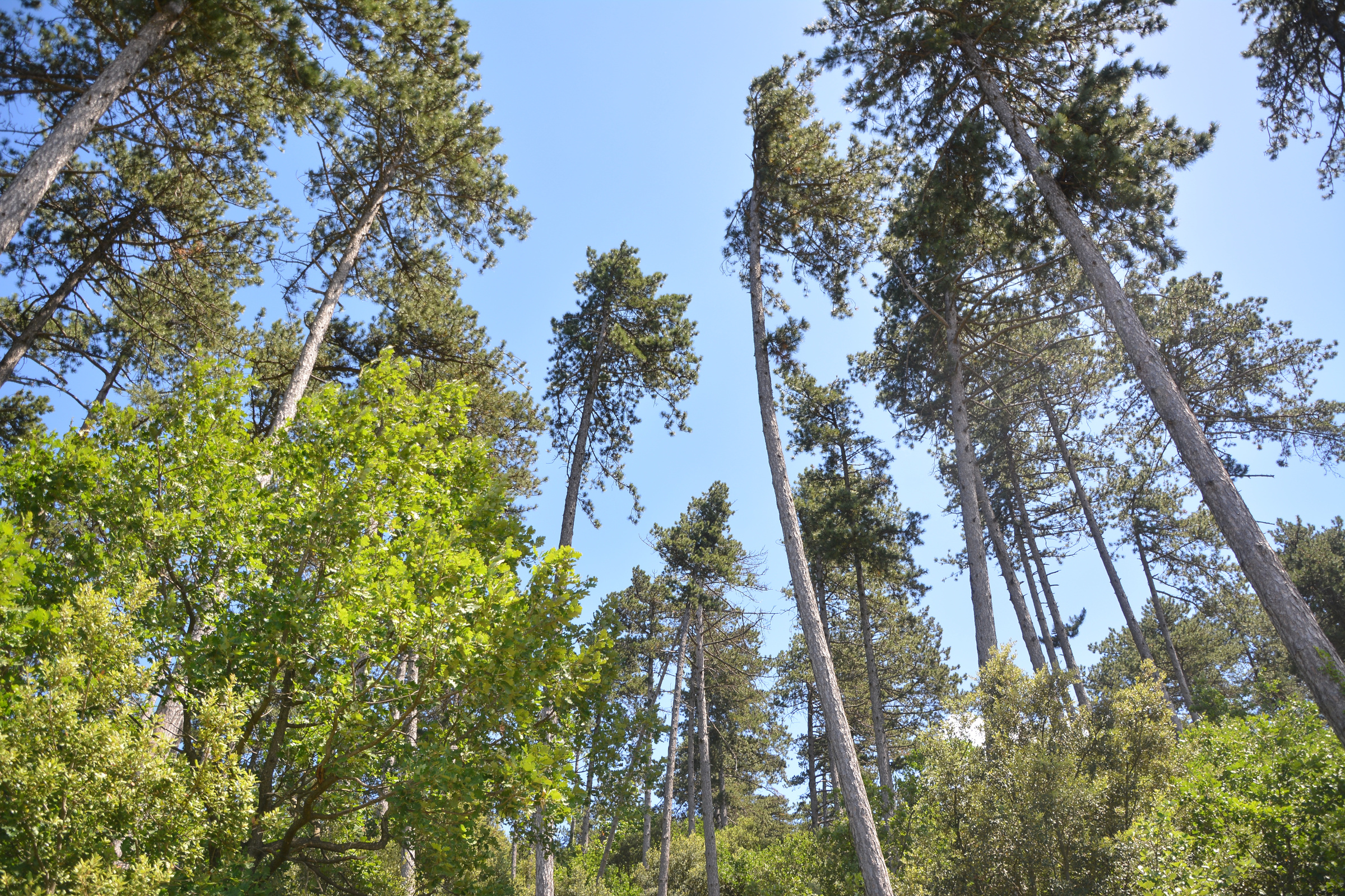 Jenseits der reinen Artbetrachtung wurde viel über waldbauliche Praktiken diskutiert, wobei die französischen Försterinnen und Förster sehr an unserer Einschätzung interessiert waren: Was halten wir beispielsweise von Verjüngungspraktiken mit weiten Pflanzabständen von 3 x 3 m, die Lücken für eine reichlich aufkommende Naturverjüngung schaffen? Wie beurteilen wir die Überführung der typischen Nieder- und Mittelwälder in artenreiche Dauerwaldstrukturen mit hoher Klimaresilienz? Wie sehr vertrauen wir Halbschatten- und Schattenbaumarten wie Linde, Bergahorn und Esche, die sich unter dem lichten Schirm der Schwarzkiefer verjüngen – haben sie Zukunftspotential oder sollten Schirmschläge das nötige Licht für (Flaum-) Eichenverjüngung schaffen?