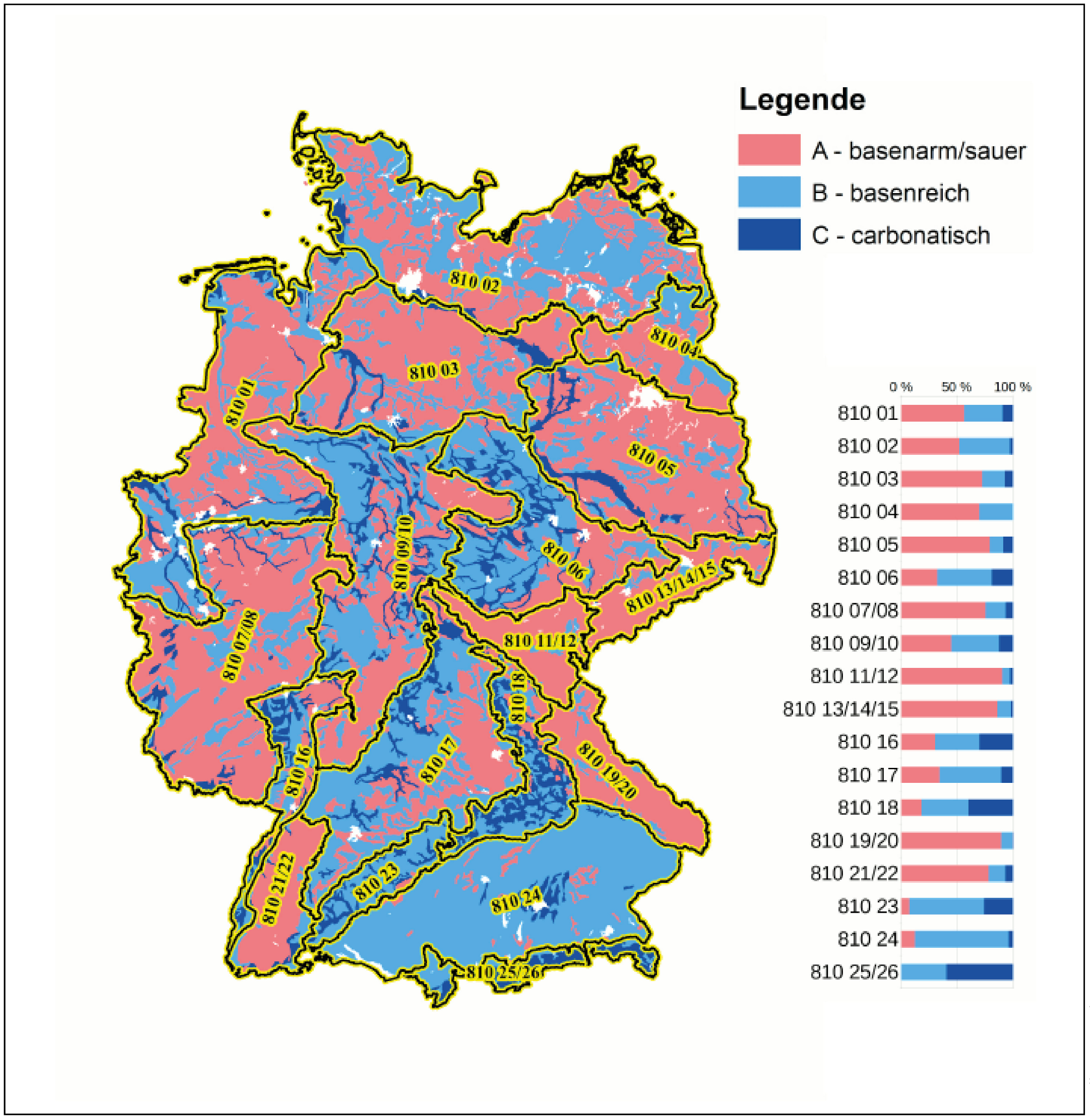 Datengrundlage ist die Bodenkarte 1:1.000.000 des European Soil Date Centre (ESDAC) der Europäischen Kommission. Bewertet werden die WRB-Bodentypen. In Deutschland sind dies 29 Einheiten. Der Großteil davon ist eindeutig einer der drei Klassen sauer, basenarm (A), basenreich (B) oder carbonatisch (C) zuzuordnen. So sind beispielsweise Tschernoseme per Definition basenreich, Podsole hingegen per Definition basenarm. Gleiches gilt für die Klassifikatoren eutric (hohe Basensättigung) und dystric (geringe Basensättigung). Andere Bodentypen können aufgrund diagnostischer Horizonte, Eigenschaften oder Ausgangsmaterialien ebenfalls eindeutig einer der drei Gruppen zugeordnet werden, zum Beispiel calcaric (carbonatisches Ausgangsmaterial).