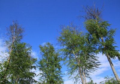 Diese Tatsache ist umso dramatischer, da es die Rotbuche ist, deren Anbau in den letzten Jahrzehnten überproportional vorangetrieben wurde, um den Wald der Zukunft naturnäher und damit auch resilienter zu gestalten. Doch auch für die Buche zeigen Studien, dass es in Zukunft für die Baumart in ihrem Kerngebiet schwieriger werden kann (Geßler et al. 2007; Weber et al. 2013; Thurm et al. 2018). Eine laufende Untersuchung des Forstlichen Versuchswesens (BuVit-MV, Buchenvitalitätsschäden) soll aufbauend auf die Jahre 2018/19 zeigen, wo sich Risikostandorte für die Rotbuche im Land befinden.