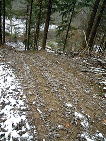 Abbildung 5: Steiler Rückeweg auf bindigem Substrat. Abgesehen von der Art der Anlage ist eine rasche Sicherung der Oberfläche notwendig, um weiteren Bodenabtrag zu vermeiden