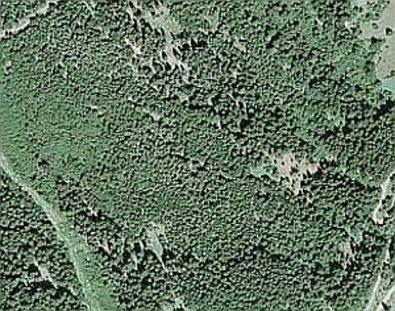 Abbildung 6b: Die gleiche Fläche bestockt mit Fichte im Jahr 2005 (Überschirmungsgrad 0,7)