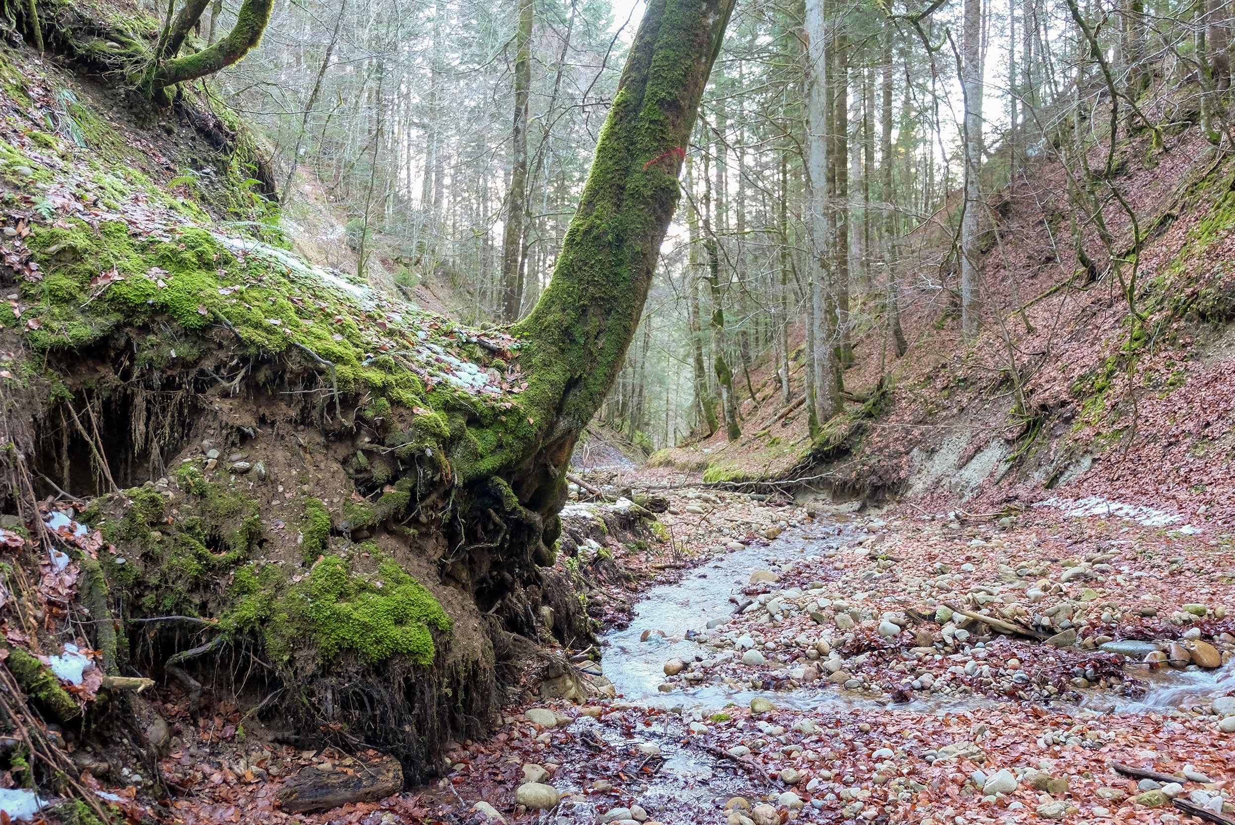Schutzwälder - Typ C sind Gerinne-Schutzwälder, bei denen eine permanente Waldbedeckung nötig ist.
