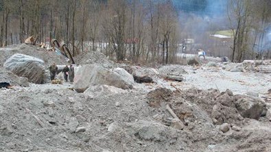 Abb. 11. Übermurung mit Grossblöcken von bis zu 5 m Durchmesser, Rueun November 2002.