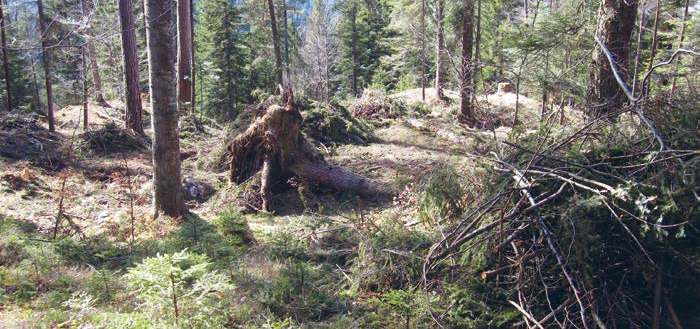 Mit gezielten Eingriffen werden verjüngungsgünstige Standorte geschaffen. Die Entwicklungsprognose dient dazu, die Wirkung der natürlichen Kräfte abzuschätzen und diese durch die gewählte Massnahme und den Zeitpunkt eines Eingriffes zu nutzen und zu fördern.