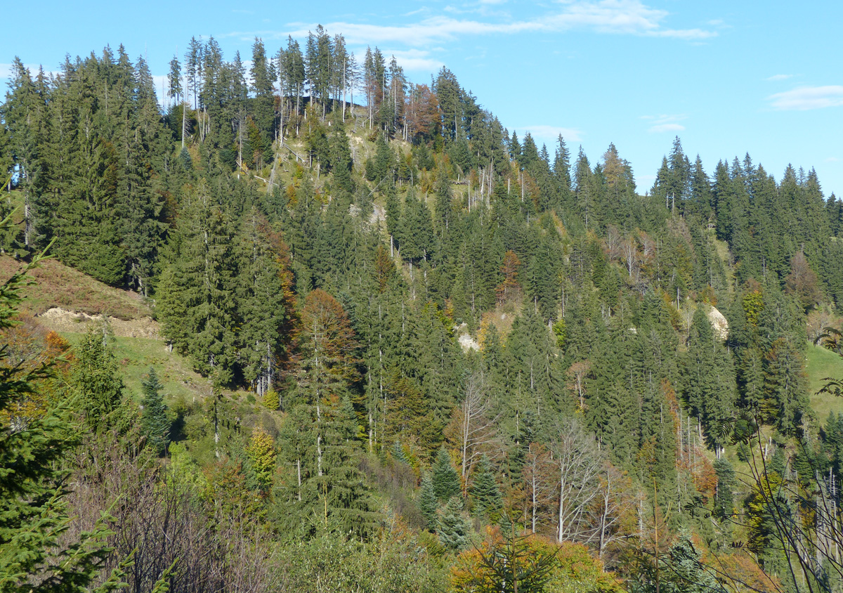 Bergahorn: Der Bergahorn als weitere Laubbaumart wurde im vorliegenden Bericht nur am Rande untersucht, da seine Höhenverbreitung ein anderes Bild aufweist. Seine Bedeutung für die Gebirgswälder soll dies nicht schmälern. Im Tannen-Buchenwald ist er oft beigemischt, vereinzelt auch im Tannen-Fichtenwald. In speziellen Schuttwäldern nimmt er oft eine dominante Stellung ein. Auf nassen Standorten steigt er deutlich höher als die Esche und trägt hier deren wichtige Funktion bis in Höhenlagen von über 1400 Meter.