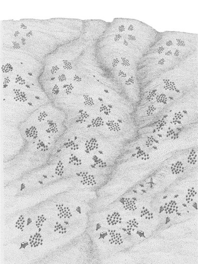 Bei Durchmessern bis zu einer Baumlänge würden die Rotten, zumindest solange die Bäumchen noch klein sind, immer noch flächige Gebilde ergeben. Bei engem Pflanzverband braucht man zudem sehr grosse Pflanzenzahlen. Um die Kleinststandorte noch besser auszunützen und die Pflanzenzahlen in Grenzen zu halten, unterteilt man die Rotten in mehrere vorläufige Teil- oder Kleinrotten mit Durchmessern von 3 bis 4 m, bestehend aus 20 bis 40 Bäumchen. Die Pflanzabstände innerhalb der Kleinrotten sind so zu wählen, dass die Bäumchen sich innert spätestens 5 bis 10 Jahren zu einem Klein-Kollektiv zusammenschliessen. In höchsten Lagen bedeutet dies also Abstände bis hinunter auf 50 cm. Nur so kommen die Vorteile der Lebensgemeinschaft schon während der gefahrvollen Aufwuchsphase zum Tragen. Der Abstand zwischen diesen Kleinrotten wird so festgelegt, dass diese im Laufe weniger Jahrzehnte zu den endgültigen Rotten zusammenwachsen.