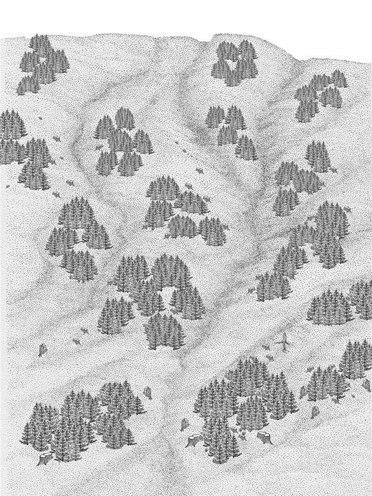 Der naturnahe Gebirgswald zeigt in der Regel gegen die obere Waldgrenze hin eine immer ausgeprägtere Rottenstruktur. Die Bestände lockern sich zunehmend in einzelne Baumgruppen und Lücken auf. Diese Rottenstruktur gipfelt in der "Kampfzone" der Bäume meist in den sogenannten Fichtenkolonien, d.h. Lebensgemeinschaften von Klonen, die auf vegetativem Weg entstehen, indem sich Äste mit Bodenkontakt bewurzeln, an den Spitzen aufrichten und neue Stämme ausbilden. Ein Baum im Kollektiv muss also in dieser harschen Umwelt gegenüber einem Einzelbaum und auch gegenüber einem Mitglied eines geschlossenen Bestandes Vorteile haben.
