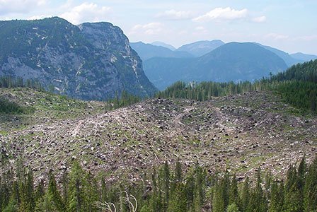 Abb. 2: Bei Katastrophenereignissen im Kalkalpin wird oft der blanke Fels freigelegt (Foto: M. Kohlpaintner).