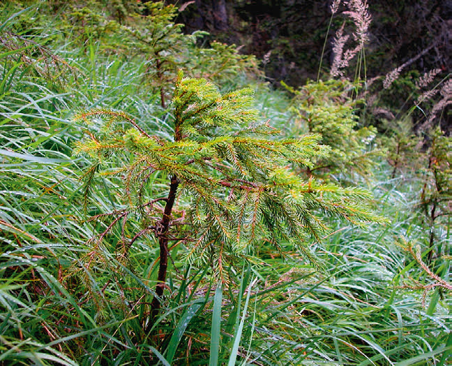 Abb. 5 - Dichte Ansamung von Fichten, die bereits grösser als 10 cm sind. Foto: Peter Brang (WSL)