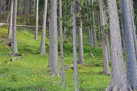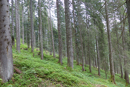 Abb. 6 - Die Bodenvegetation kann in einer Öffnung zur Konkurrenz für die Verjüngung werden. Foto: Peter Brang (WSL)