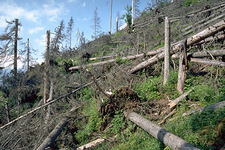 Im Hochgebirge sind daher eine dauerhafte Waldbestockung aus standortsgemäßen Baumarten und eine verjüngungsförderliche Bestandesstruktur besonders wichtig. Damit kann auch nach Katastrophenereignissen eine völlige Bloßlegung des Bodens vermieden und eine schnelle Wiederbewaldung ermöglicht werden.
