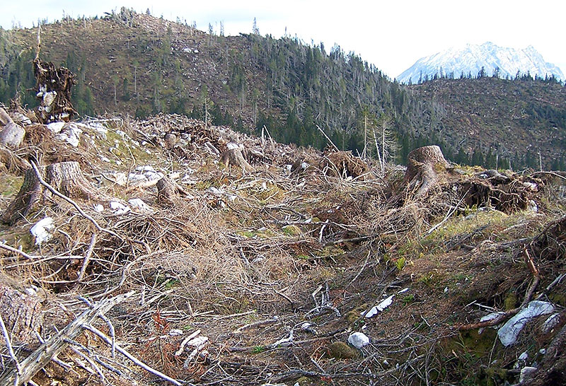 Abb. 1: Geräumte Sturmwurfflächeim im Lattengebirge (Oktober 2007) nach dem Sturm Kyrill (Foto: M. Kohlpaintner).