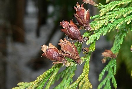 - Fruktifikation: Tsuga heterophylla blüht und fruchtet etwa ab Alter 20-25. Mastjahre sind häufig. Die Samenverbreitung erfolgt durch den Wind über z.T. sehr weite Strecken.