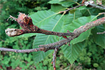 Abb. 3: Galle der Edelkastaniengallwespe an einem Blatt einer Edelkastanie. Foto: C. Hübner
