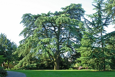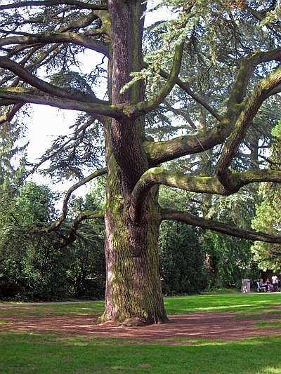 Abb. 1:Cedrus libani im Weinheimer Schlossgarten (Höhe 23 m, Stammumfang 5,20 m, Kronendurchmesser 27 m). Foto: Ueberwald, Wikimedia Commons