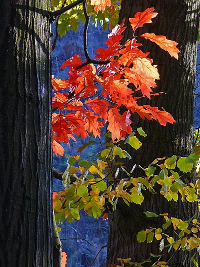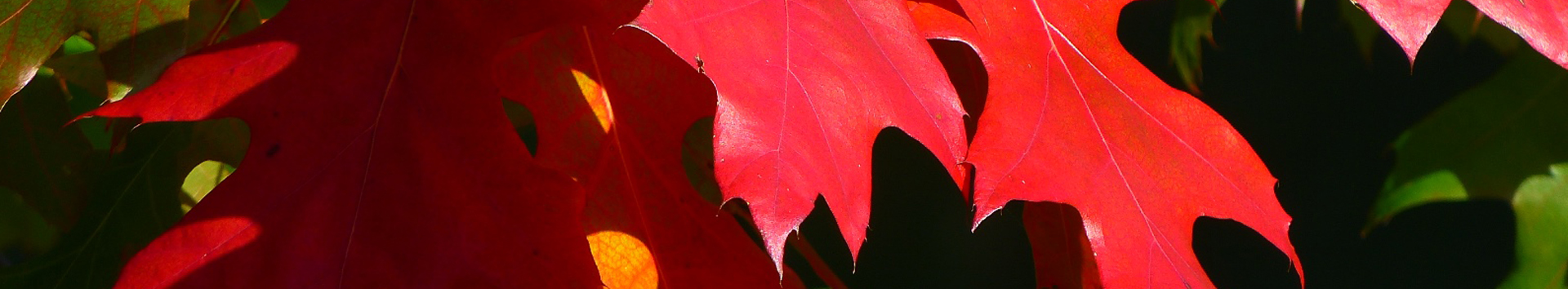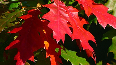 Abb. 1 und 2: Blätter der Roteiche mit Herbstverfärbung und im Sommer.