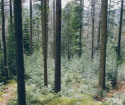- Erhöhung der Strukturvielfalt, weil reich strukturierte Wälder, seien sie im Femelschlag- oder im Dauerwaldbetrieb bewirtschaftet, weniger störungsanfällig sind und sich dank vorhandener Vorverjüngung rascher von Störungen erholen;