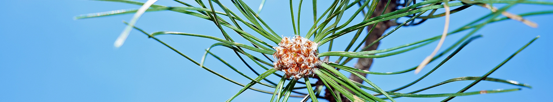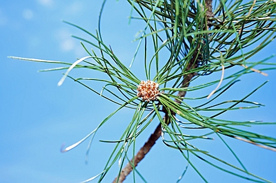 Abb. 1: Trieb einer Schwarzkiefer mit Knospe und Nadeln. Foto: C Hein
