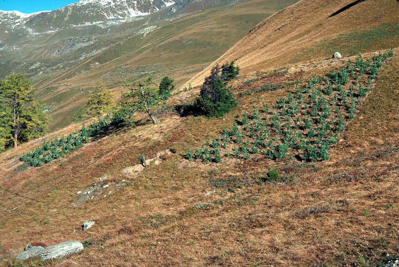 Zum Vergleich: In einer ähnlichen Aufforstung am Stillberg, wo unter anderem 30'000 vertopfte, 5-jährige Arven gepflanzt wurden, lag die Ausfallquote nach sieben Jahren bei lediglich 25%.