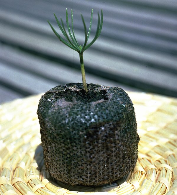 - Die Sämlinge in den Mini-Torftöpfen sind nur eine kurze Zeitspanne im Forstgarten.