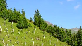 Der weitaus grösste Teil der Schutzwälder verjüngt sich natürlich. Auf Standorten mit ungenügender Naturverjüngung hingegen und in Hochlagenaufforstungen müssen junge Bäumchen gepflanzt werden, wenn sich dort ein Waldbestand etablieren soll. Diese Bäumchen können aber nur dann überleben, wenn sie den extremen Standortverhältnissen angepasst sind. Aus diesem Grund betreibt der Kanton Bern seit den 1950er-Jahren eigene Pflanzgärten. Die Forstbaumschule am Kleinen Rugen in Matten bei Interlaken hat sich auf die Nachzucht von Forstpflanzen für hohe Lagen spezialisiert.