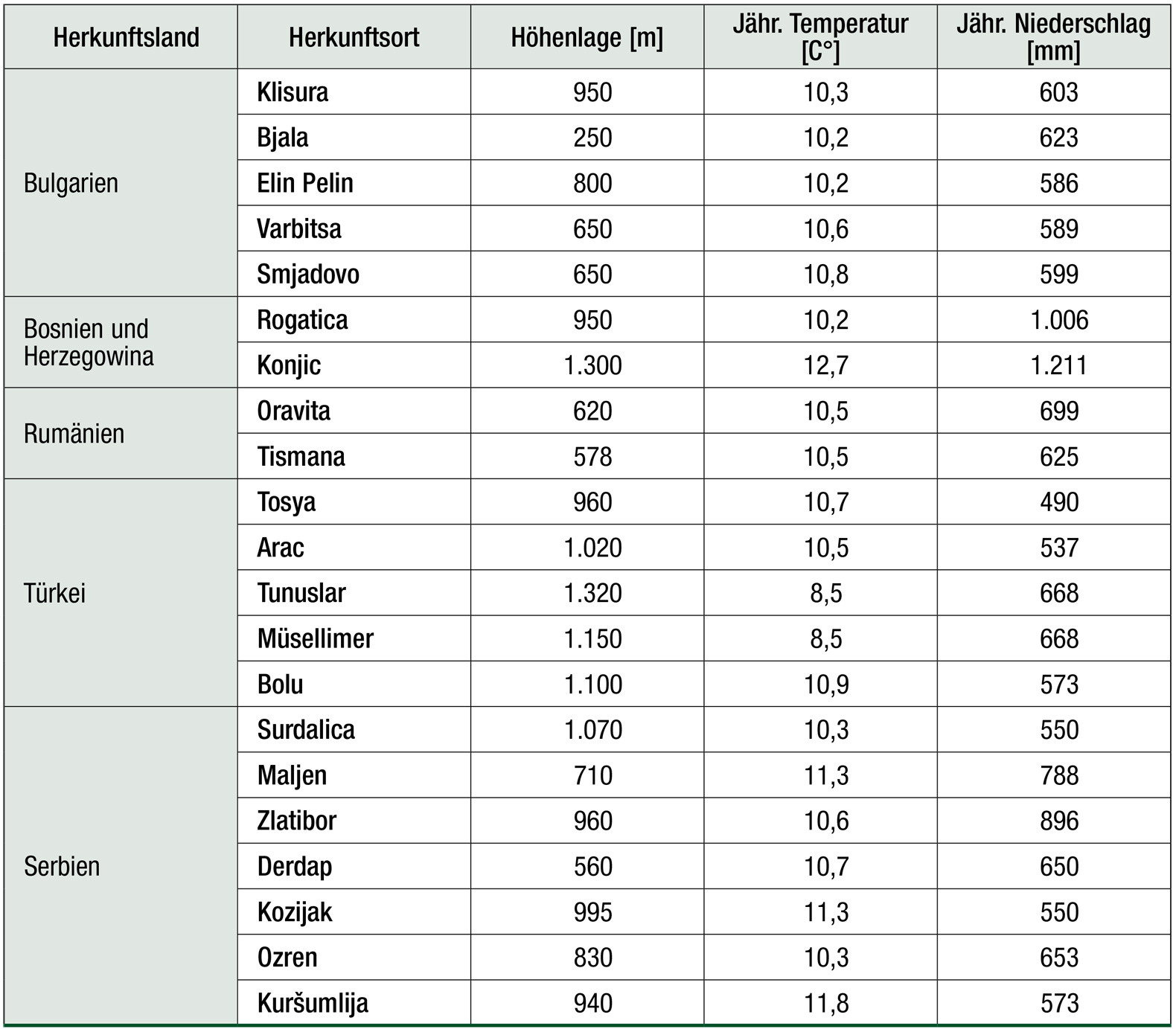 Die phänotypischen und genotypischen Eigenschaften, die diese Bestände auszeichnen, sollten daher in Herkunftsversuchen detailliert untersucht werden, um die geeigneten Herkünfte für Deutschland zu identifizieren. Die Bereisung und fachliche Bewertung (Phänotyp und Genotyp) von möglichen Alternativbaumarten stellt den ersten Schritt dar, damit bei einer späteren Herkunftsempfehlung genau nachvollziehbar ist, wo das gewünschte Vermehrungsgut gewonnen werden kann. Ebenso sollten die Erfahrungswerte der Kollegen aus den Herkunftsländern berücksichtigt werden, um mögliche Fehler beim Anbau von möglichen Alternativbaumarten zu vermeiden.