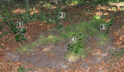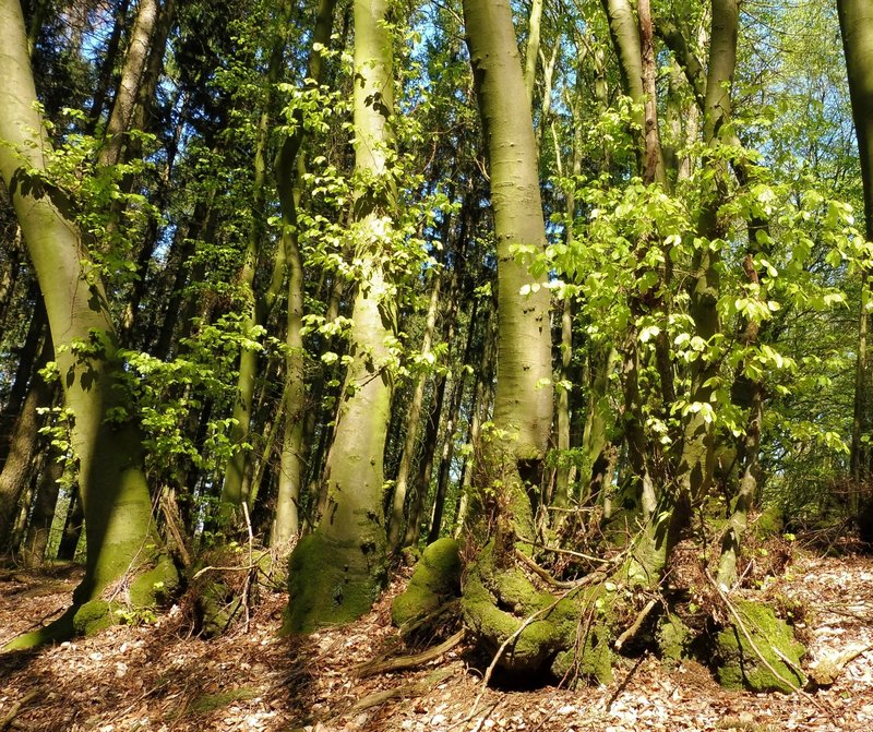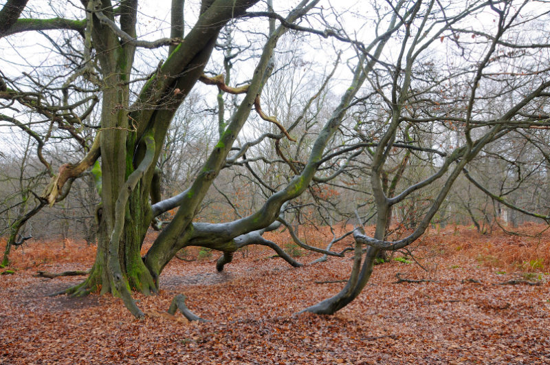Abb. 5: Dieser alte, langgestreckte und strukturreiche Buchen-Wurzelstock ist durch Absenkervermehrung und Niederwaldnutzung entstandenen. Großer Kellenberg im Wiehengebirge bei Melle. Foto: Volker Tiemeyer