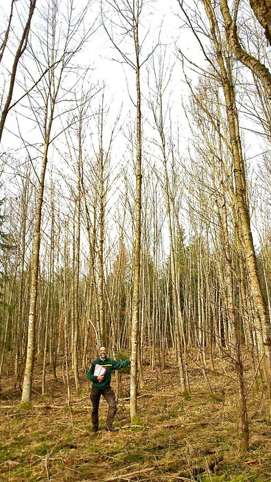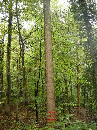 Abb. 6: Bergahorn-Plusbäume, die im Rahmen des FitForClim-Projekts in Baden-Württemberg ausgelesen wurden. Gesucht werden Bäume, die vital, wüchsig, wipfel- und geradschäftig sind und allgemein eine überragende Stammqualität aufweisen.
