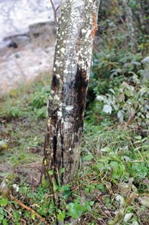 Wurzelinfektionen durch Phytophthora alni sind nur in künstlichen Böden von Saatbeeten oder Pflanzgärten möglich. In Waldböden fangen Konkurrenzpilze die Sporen ab, was die Gefahr einer Erkrankung im Wurzelsystem stark verringert. Erst einige Jahre nach der Auspflanzung zeigen die Erlen Symptome (Abbildung 1).