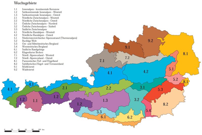 Die hier vorgestellte Wuchsgebietsgliederung sollte die drei bisher bestehenden Gliederungen für Österreich ersetzen. Sie ist nunmehr allgemein gebräuchlich und auch in gesetzliche Regelungen betreffend den Verkehr mit forstlichem Vermehrungsgut eingeflossen.