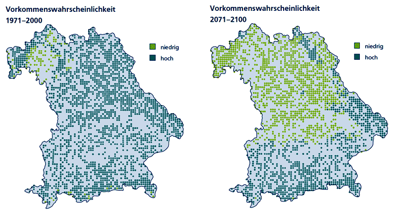 In diesen provisorischen Klima-Risikokarten werden leidglich Klimawerte verwendet. Das ist darin begründet, dass klimatische Größen und insbesondere die Temperatur die wichtigste Steuergröße für die Verbreitung der Arten sind. Erst auf der lokalen Ebene kommen weitere Steuergrößen hinzu.