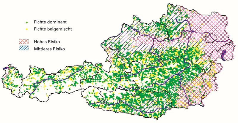 Abbildung 3: Risikogebiete für Fichte in Österreich