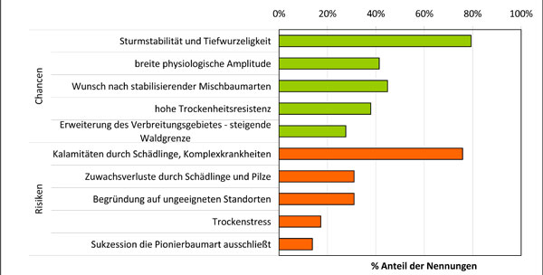 Abbildung 1: Chancen und Risiken der Lärche im Klimawandel nach Meinung von Forstexperten