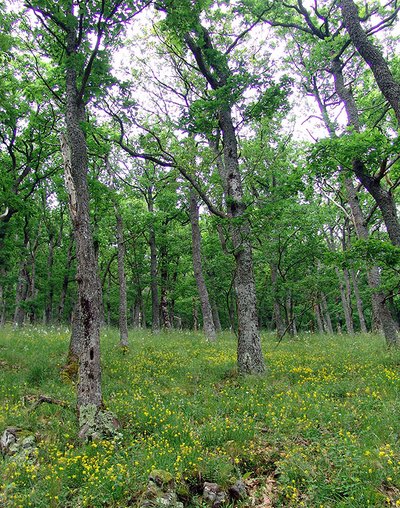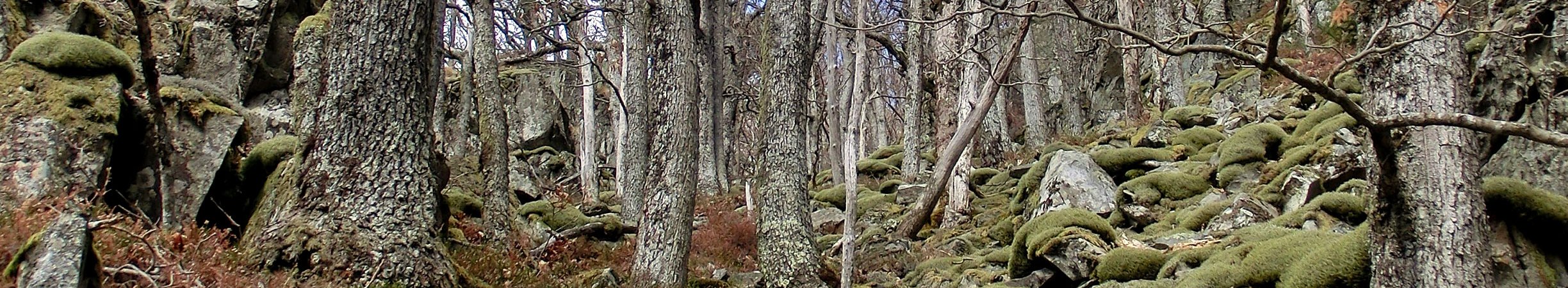 Abb. 1: Moosreicher Habichtskraut-Traubeneichenwald in Steilhanglage auf blockigem Substrat (Foto: R. Boeuf)