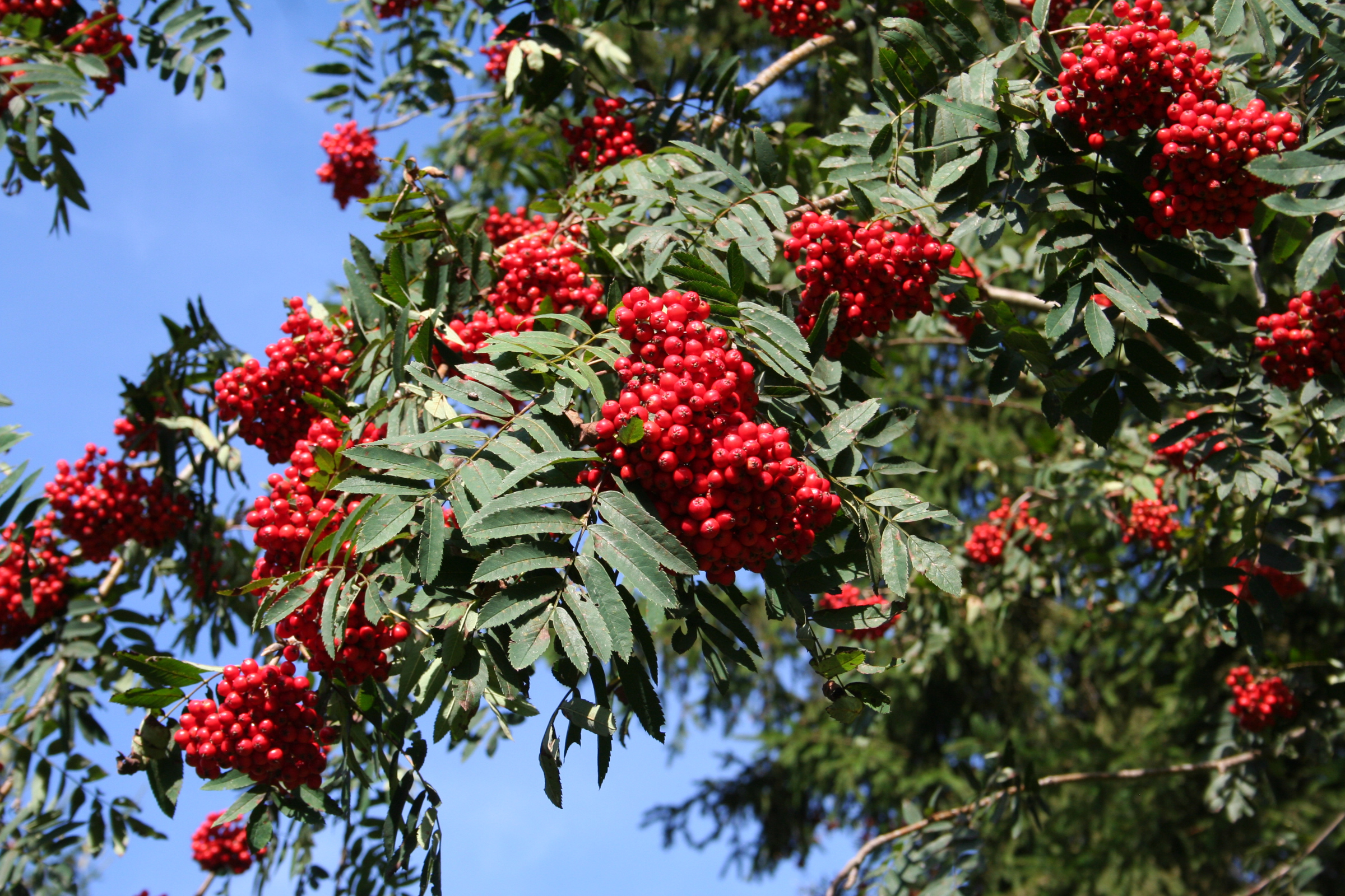 Abb. 1: Achtung Verwechslungsgefahr, zumindest beim Blick auf die Blätter. Die Borke hingegen ist bei der Vogelbeere immer glatt, mitunter sogar glänzend, beim Speierling rauh und rissig. Spätestens mit Fruchtbehang ist die Unterscheidung ein Kinderspiel: Links: Speierling, rechts: Vogelbeere. Fotos: Gregor Aas