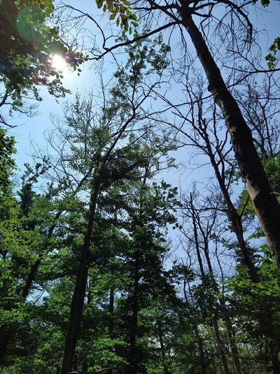 Bei der aktuell laufenden Einrichtung der Untersuchungsbestände bestätigt sich die Stratifizierung des Klimaraumes und insbesondere die Definition des marginalen Bereichs insofern, dass es dort schwierig war, bei ungünstigerem Bodenwasserhaushalt Bestände ohne Trockenschäden zu finden. Dies gilt auch und gerade für die Buche, die bis vor Kurzem meist noch als "sichere Bank" im Klimawandel angesehen wurde. Im marginalen Bereich wiesen die Grenzbestände der Buche teilweise bereits deutliche Schäden auf (Abbildung 5), wohingegen die Bestände auf besseren Standorten augenscheinlich weniger betroffen waren. Verstärkte Trockenschäden im Marginalbereich werden auch von den dort anfallenden Schadholzmengen bestätigt. Die laufenden umfangreichen Untersuchungen in unserem systematischen Studiendesign dienen dazu, beobachtete Reaktionen von Baumpopulationen entlang der Standortgradienten zu quantifizieren und deren Bestimmungsfaktoren zu identifizieren. Besonders interessant ist die beobachtete Variabilität, die sich darin äußert, dass in der Nachbarschaft zu geschädigten Bäumen regelmäßig auch vitale Individuen bzw. Bestände vorkommen. Im Fokus stehen also jene Bestände, die sich vom beobachteten Trend einer abnehmenden Vitalität mit Annährung an den warm-trockenen "Rear Edge" positiv abheben. Denn solche Populationen können der Ausgangspunkt für die Nutzung heimischer Genressourcen in der Zukunft sein. Durch die Kombination moderner Methoden in einem systematischen Studiendesign in "sensFORclim" kann die Frage nach klimaplastischen Herkünften unserer heimischen Baumarten zielgerichtet und daher so effizient und zeitnah wie möglich beantwortet werden.