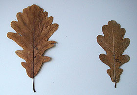 Wer schon einmal versucht hat, anhand der Blattmerkmale eine hiesige Eiche zu bestimmen, dem ist es wohl wie vielen anderen ergangen: Über die Artzugehörigkeit des Untersuchungsgegenstands sind Zweifel aufgekommen. Zwar weisen vielleicht die Blattöhrchen klar auf eine Stieleiche hin, doch der Blattstiel ist etwas gar lang. Und ist nicht noch etwas Behaarung auf der Blattunterseite erkennbar, was auf eine Traubeneiche schliessen liesse? Beim nächsten Blatt desselben Triebes sieht es schon wieder etwas anders aus... Und wieso sind die Fruchtstiele nun doch länger als erwartet?